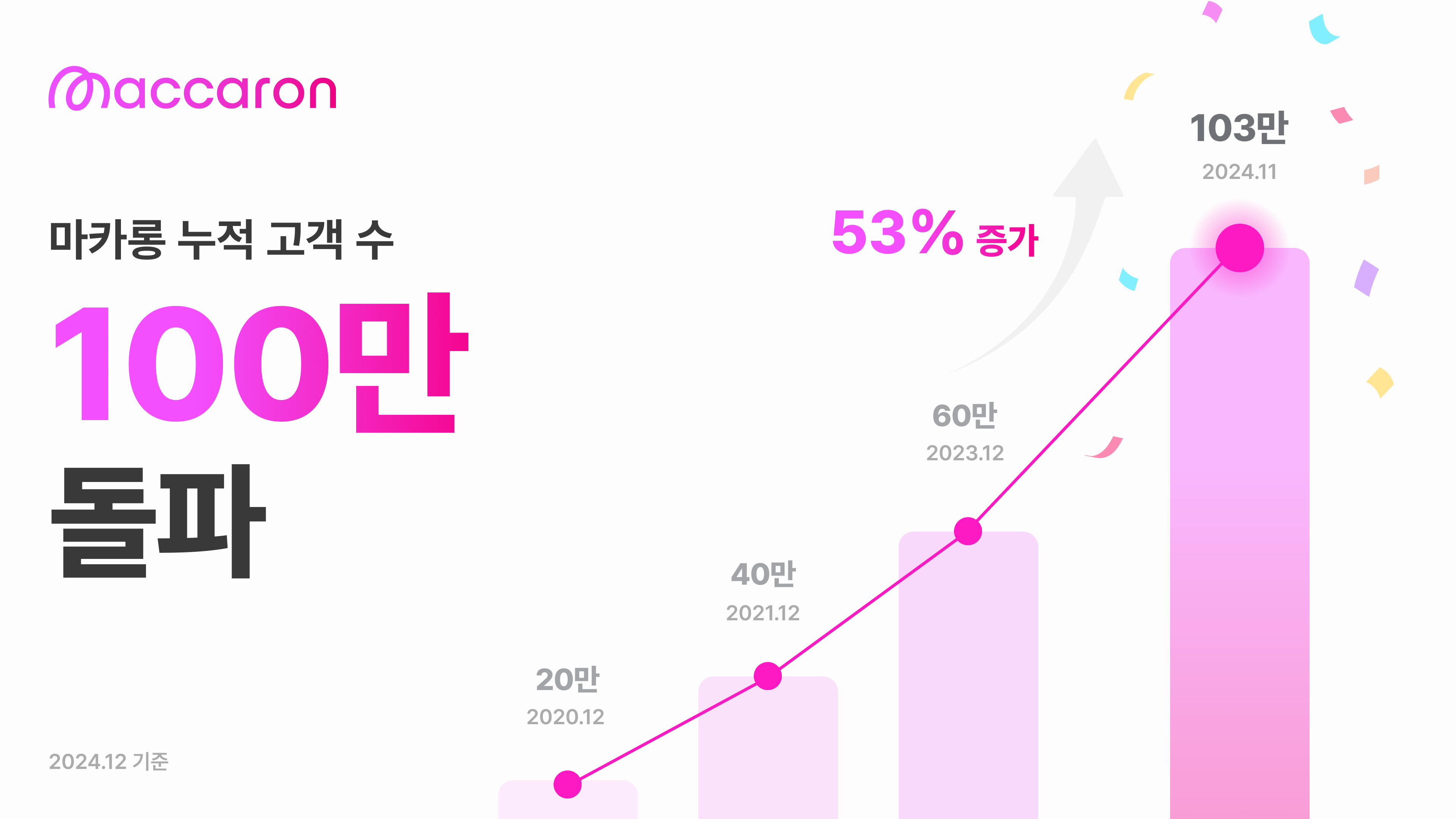 마카롱의 누적 고객수는 꾸준히 증가해 지난 11월 103만 명을 기록, 전년 대비 약 53% 성장했으며 월간 활성 이용자 수(MAU)는 120만 명에 이른다.