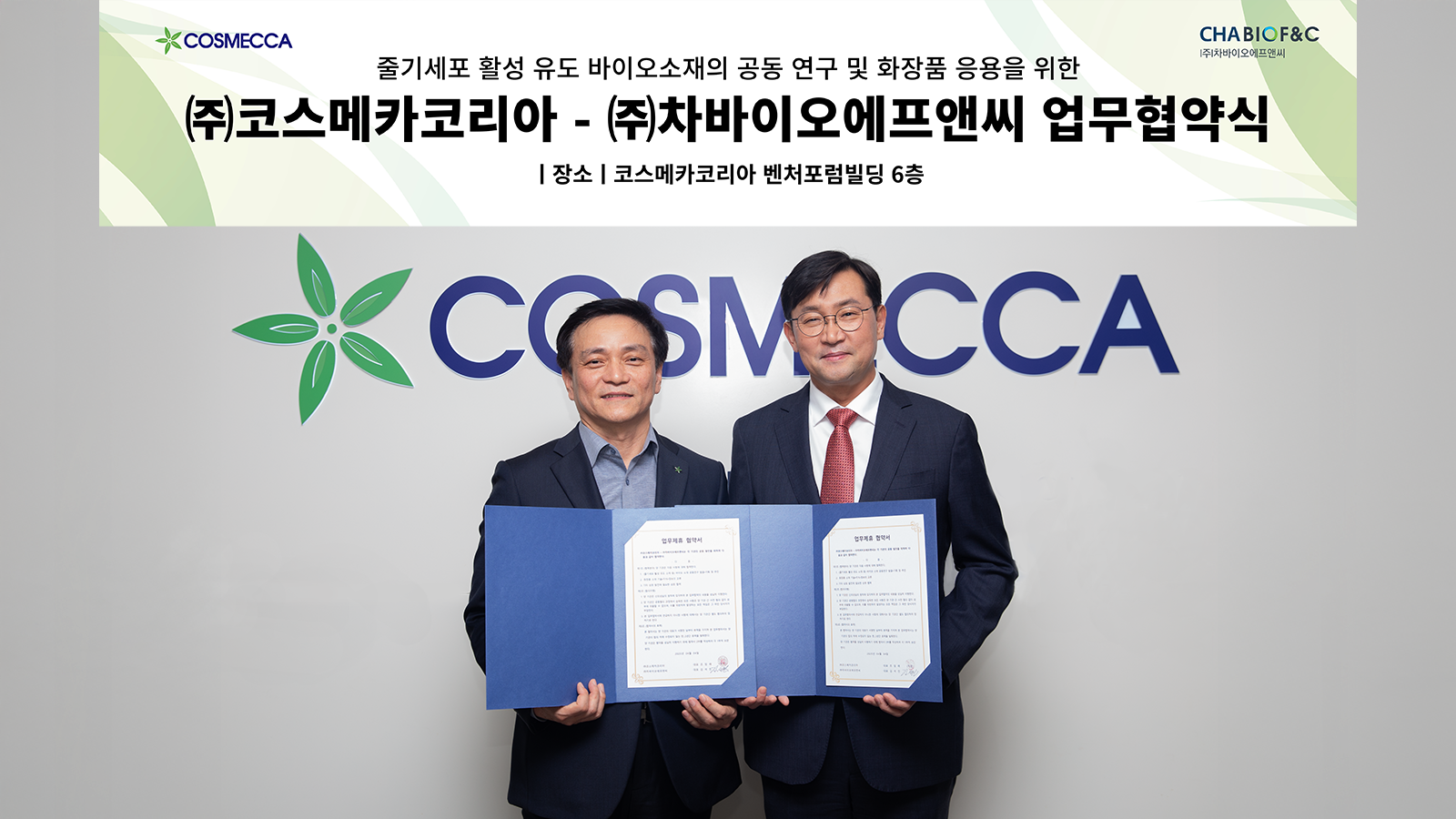 코스메카코리아 최영진 기술연구원장은 “이번 협력은 고부가가치 바이오소재 포트폴리오 확장을 위한 중요한 기회”라며 “차바이오F&C의 첨단 바이오 기술과 당사의 화장품 개발 역량이 시너지를 발휘해 글로벌 기능성 화장품 시장에서 새로운 돌파구를 마련할 것”이라고 말했다.