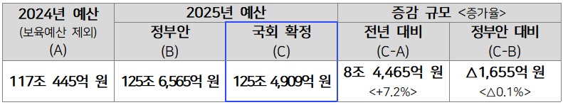 이는 올해 예산(보육예산 제외 117조 445억원) 대비 8조4465억원(7.2%) 증가한 규모다.